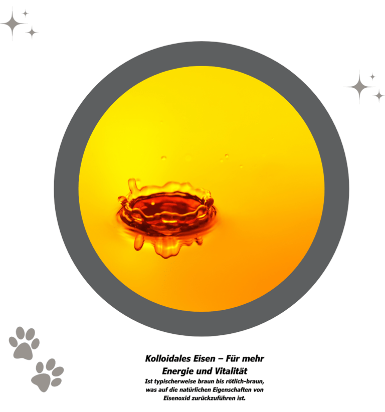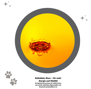 Eisen ist eines der wichtigsten Spurenelemente, das für die Bildung von roten Blutkörperchen und den Sauerstofftransport im Körper unerlässlich ist. Für Hunde, die an Anämie oder Erschöpfungszuständen leiden, kann kolloidales Eisen eine wertvolle Hilfe sein. Es verbessert die Sauerstoffversorgung im Körper und steigert somit die Leistungsfähigkeit und Ausdauer deines Hundes.