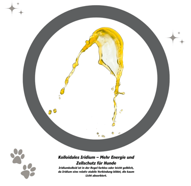 Innere Anwendung zur Zellregeneration: Mische kolloidales Iridium in das Futter deines Hundes oder verabreiche es direkt, um die Zellgesundheit zu fördern und die Energieproduktion in den Mitochondrien zu unterstützen.