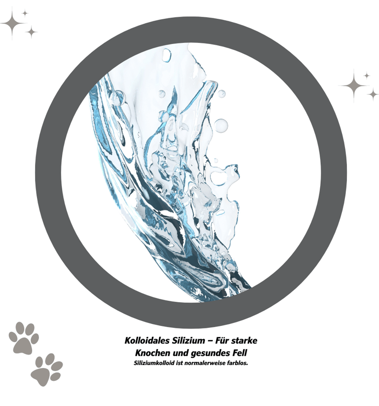 Silizium ist ein essentielles Spurenelement, das eine zentrale Rolle bei der Stärkung von Bindegewebe, Knochen und Haut spielt. Besonders für Hunde, die zu Gelenkproblemen, schwachem Bindegewebe oder Hautproblemen neigen, kann kolloidales Silizium eine wertvolle Ergänzung sein. Es unterstützt die Produktion von Kollagen, fördert die Knochengesundheit und hilft dabei, die Elastizität der Haut zu bewahren.