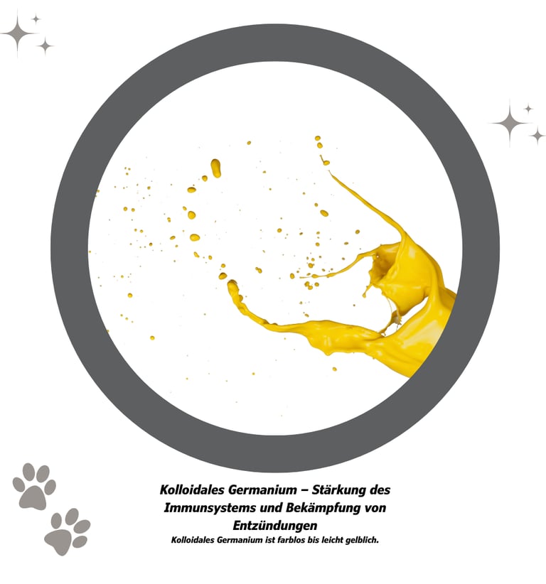 Innere Anwendung zur Immunsystemstärkung: Verabreiche kolloidales Germanium direkt ins Futter oder ins Maul deines Hundes, um seine Sauerstoffverwertung und Immunkraft zu steigern.